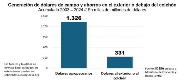 Es decir que 1 de cada 4 dólares que produjo el campo se fueron al exterior o se quedaron debajo del colchón.