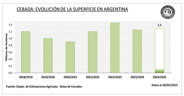 La campaña 2025/2026 de cebada da inicio con una superficie proyectada de 1,3 MHa, una cifra que se mantiene estable respecto al ciclo anterior y se ubica un 7 % por encima del promedio de las últimas cinco campañas. La siembra comienza con buenas reservas hídricas, aunque en sectores del margen este de la región agrícola se registran excesos de humedad que dificultan el ingreso de maquinaria a los lotes. A nivel nacional, ya se ha implantado el 4,8 % del área proyectada, lo que representa un avance de 2,3 p.p. por encima del ritmo registrado en la campaña previa. En los principales núcleos cebaderos del sur, el progreso es significativo, destacándose el sudoeste de Buenos Aires, donde la siembra ha cobrado celeridad en este inicio de campaña.