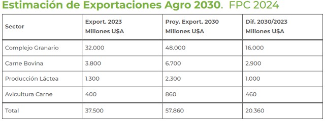 En 2024, desde la Fundación estimamos un potencial real de exportaciones agroindustriales para 2030 de casi 58.000 millones de dólares, lo que representa un crecimiento cercano a 20.000 millones respecto de las campañas recientes. Esto implicaría una inversión anual de entre 11.000 y 12.000 millones de dólares en costos de implantación y protección de cultivos, sin contar incentivos como el Régimen RIGI vigente en otros sectores de la economía.