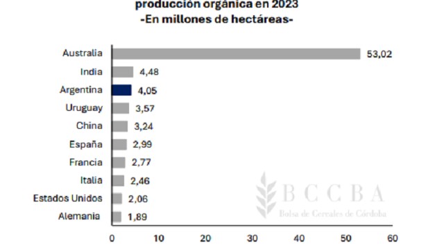 A esto se suma un crecimiento sostenido en la producción orgánica, donde el país se ubica entre el segundo y tercer puesto mundial por superficie, con más de 4 millones de hectáreas certificadas y una fuerte concentración en cultivos industriales (40%) y cereales (31%). Buenos Aires (31%), Mendoza (17%) y Jujuy (10%) lideran en superficie cosechada bajo esta modalidad.