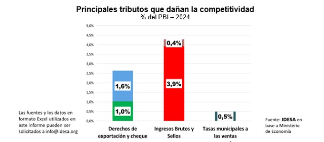 El Estado nacional aplica derechos de exportación por el 1,0% del PBI y el impuesto al cheque por el 1,6% del PBI.