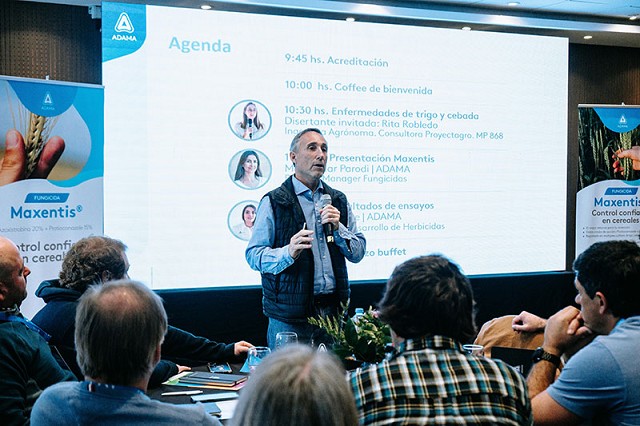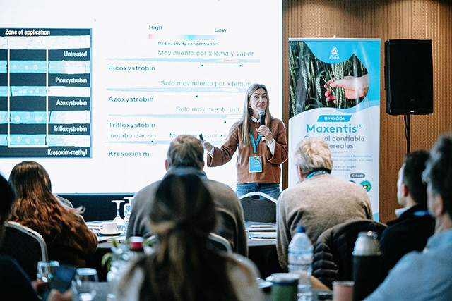 "A Maxentis lo venimos ensayando desde hace 6 campañas en más de 20 localidades. Contamos con una contundencia y una calidad de datos muy importante, y vemos que performa excelente en lo que es control de royas y manchas", expresó Carolina Maune, del área de Desarrollo de Productos de ADAMA.