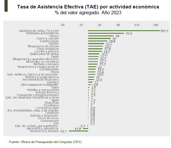 Una TAE positiva indica que laintervención estatal aumenta elvalor agregado de esa actividad.Una TAE negativa significa que laintervención estatal reduce el valoragregado del sector.