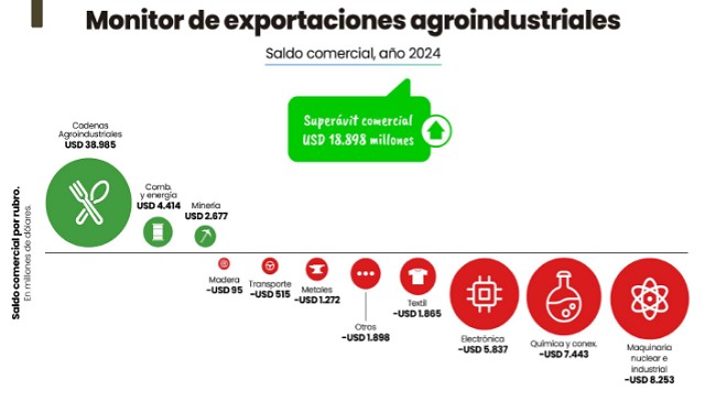 Los sectores de la economíanecesitan dólares para comprarinsumos del exterior(importaciones) y generandólares cuando venden susproductos a otros países(exportaciones). Solo 3 sectores tienensuperávit, es decir,generan más dólares delos que gastan:agroindustria, energía yminería.