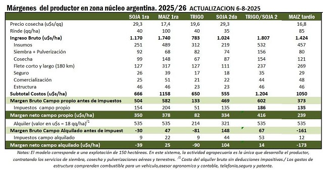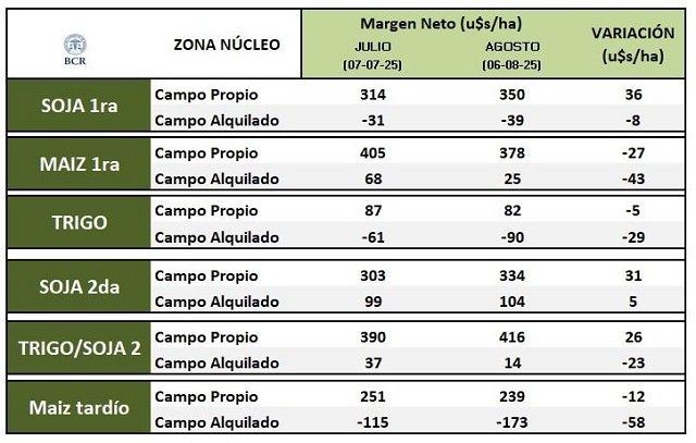 En los márgenes de agosto, la soja da un primer paso hacia adelante pero se encarecieron los alquileres