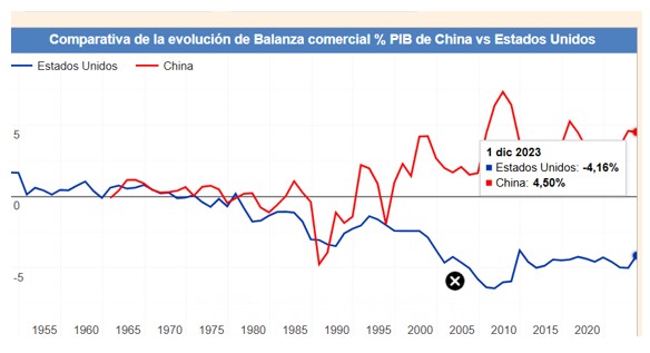 Este fenómeno comercial lleva años. Durante las últimas cuatro décadas, el déficit comercial de bienes con China ha estado en permanente suba.