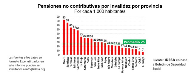 Para indagar si hubo fraudes en el otorgamiento de las pensiones por invalidez y cuál sería su magnitud hay que partir de que en el país hay 25 pensiones por invalidez cada 1.000 habitantes. Si se desagrega esta información por provincia aparece que: