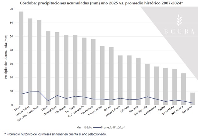 Durante julio, las lluvias estuvieron por encima del promedio histórico en toda la provincia, lo cual aporta a la recarga de perfiles para las futuras siembras.