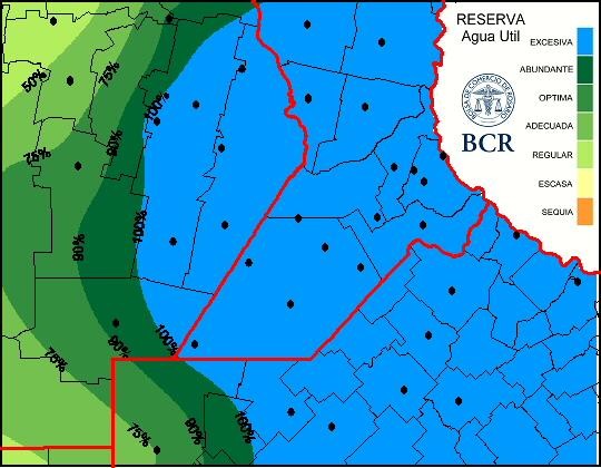 A nivel regional, 25% del área con trigo se encuentra en excelentes condiciones; 55% en buenas condiciones y 17% bajo condiciones buenas. Un 3% del área se considera en condiciones regulares a malas por mantenerse bajo agua en sectores bajos. Esos últimos cuadros se consideran perdidos por asfixia radicular.