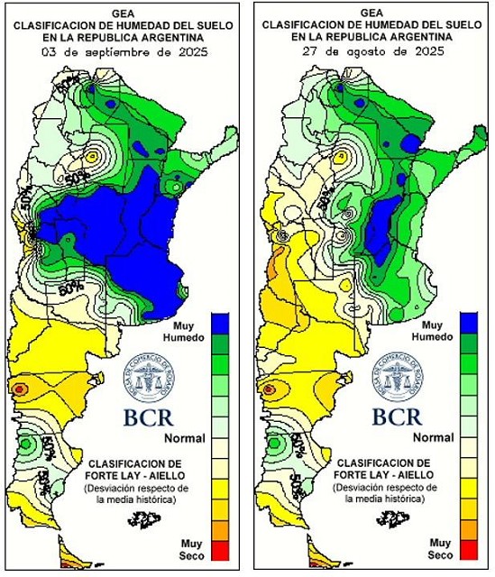 En esta semana iba a dar inicio la siembra de maíz, pero la falta de piso demandará entre 5 a 10 días, por lo menos, para volver a los lotes en la región. En Aldao estiman que habrá que esperar al menos 10 días por los fuertes anegamientos. En Bigand se proyecta cumplir con toda el área programada a partir de mediados de septiembre. En el sudeste de Córdoba preocupa perder fechas óptimas si septiembre llega con más lluvias, aunque se insiste con las siembras tempranas y se evalúan esquemas divididos para retomar luego en los bajos. En el norte de Buenos Aires, como en Junín, la incertidumbre es mayor: no se descarta reprogramar parte del área hacia maíz tardío o soja.