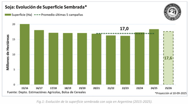 del 4,3 %, pasando de 18.400.000 a 17.600.000 hectáreas. Se proyecta una caída interanual en la superficie