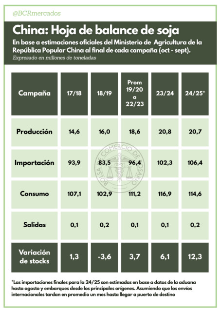 Otro punto para destacar es que, en medio de las tensiones comerciales internacionales, los operadores chinos vienen acelerando sus importaciones desde Sudamérica, especialmente luego de la llegada de la cosecha brasilera al mercado.