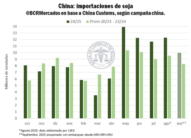 El Reporte del Mercado de Granos BCR muestra los temas más importantes de la coyuntura agroindustrial con foco en Argentina. China encadena récords mensuales de importación de soja y, sin nuevas compras a EE.UU., podría abastecerse hasta la nueva cosecha sudamericana con excedentes de 2024/25 y oferta de Brasil y Argentina.