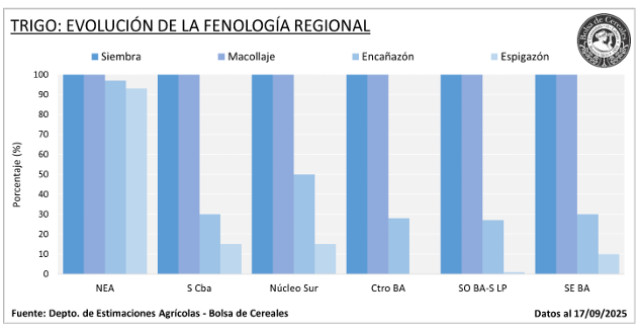 a Excelente, mientras que el 54,6 % ya transita estadíos críticos (desde encañazón en adelante), lo que mantiene elevadas expectativas para el cereal en términos productivos.