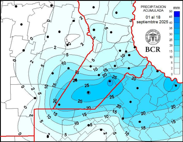 La primera quincena dio un respiro despues de la gran tormenta de fines de agosto. De todas maneras, los acumulados, sobre todo despues de último fin de semana, se dan sobre las zonas más vulnerables a excesos: extremo sur de Santa Fe y NE bonaerense.