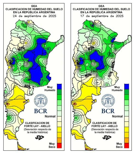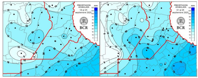 Los mayores progresos se concentran en el centro-sur de Santa Fe y el sudeste cordobés con el 90% implantado. En el noreste bonaerense, la siembra recién esta comenzando con poco más del 10% de avance. En Pergamino, los ingenieros advierten que “las lluvias han complicado la siembra, no tenemos suficientes días sin agua para poder arrancar”. En la zona se midieron entre 20 y 50 mm, con picos de hasta 60 mm. “En los lotes con 20 mm se pudo retomar rápido, pero en los sectores más cargados el exceso de agua frenó todo”. La falta de una ventana seca de al menos 10 días sigue demorando los avances: “cada tres o cuatro días vuelve a llover”, remarcan. Con apenas un 10% implantado, el noreste bonaerense necesita que cesen las lluvias para completar las siembras hacia el 5 de octubre.