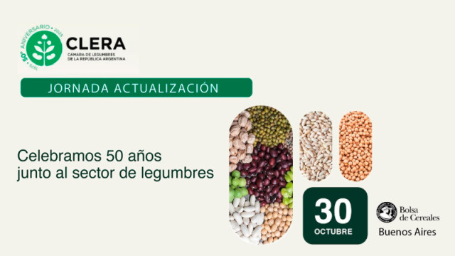El próximo 30 de octubre, la Cámara de Legumbres de la República Argentina (CLERA) conmemora su 50° aniversario con un evento especial que reunirá a referentes del sector, productores, exportadores y profesionales vinculados a la cadena de valor de las legumbres.