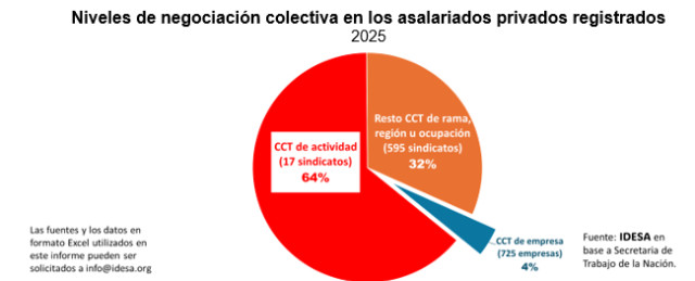 El 64% de los asalariados privados registrados bajo convenio se rige por convenios colectivos de actividad firmados por solo 17 sindicatos centrales.