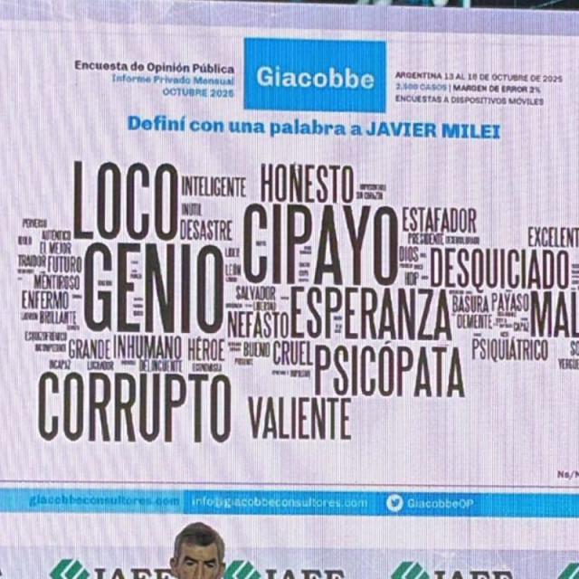 Encuesta de opinión pública sobre “Definí en una sola palabra a Javier Milei” en octubre de 2025.
