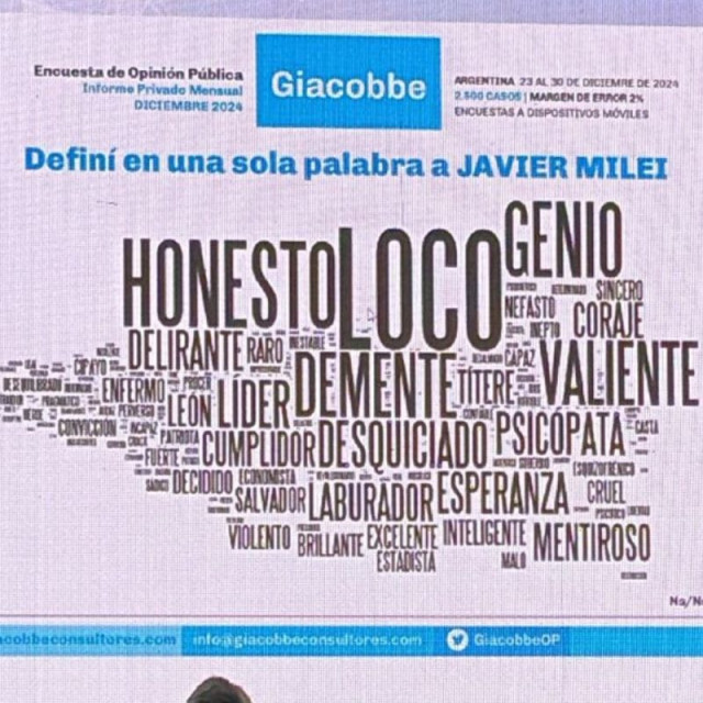 Encuesta de opinión pública sobre “Definí en una sola palabra a Javier Milei” en diciembre de 2024.
