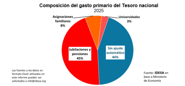 El 45% del gasto primario corresponde a jubilaciones y pensiones que, por la regla de movilidad, se ajustan automáticamente por inflación.