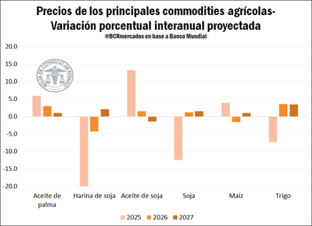 Tras una contracción estimada del 6% en 2025, el Grupo Banco Mundial proyecta que el índice de precios de los alimentos – compuesto por cereales, harinas y aceites y otros alimentos - se mantendría estable durante 2026 y 2027. El sector agrícola presenta un panorama complejo, caracterizado por una oferta robusta que presiona los precios a la baja, mientras los costos de los insumos clave muestran una tendencia alcista, generando una compresión de márgenes.