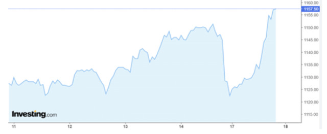 Una impresionante alza de precios inició la semana. Enero aumentó algo más de USD 12.- y marzo, USD 10.-