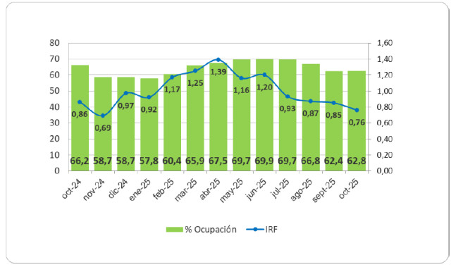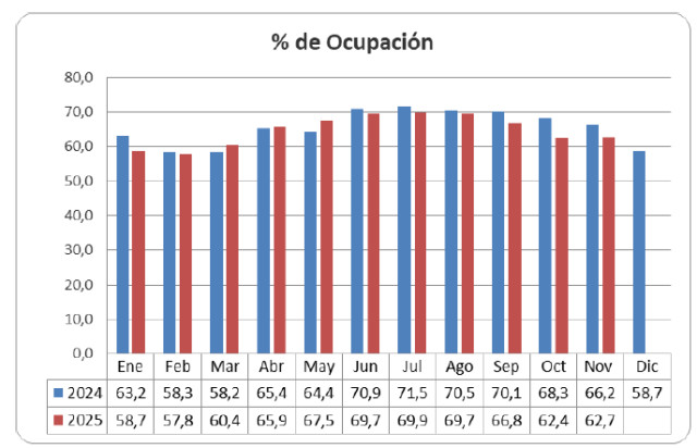 Ocupación al 01/11/25: 62,76% (Dif. -3,8 %)