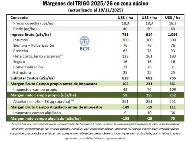 En campo alquilado la rentabilidad del trigo empieza pasando los 50 qq/ha