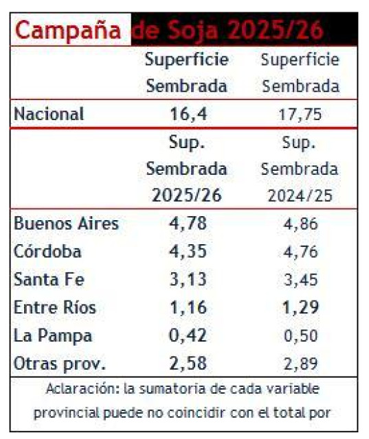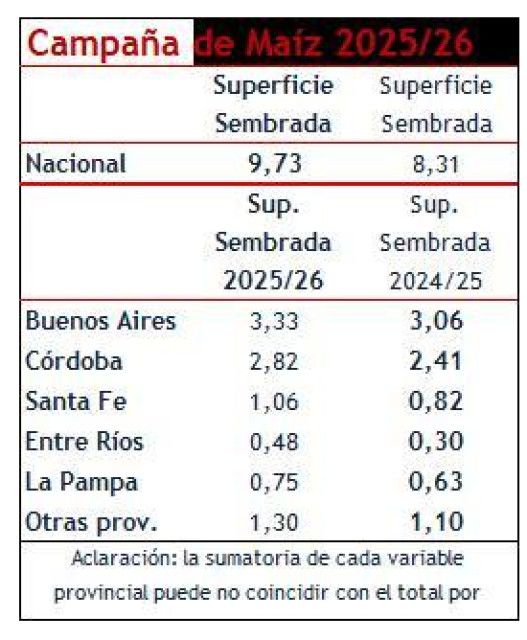 En total, hay implantadas 10,5 M de ha de las 16,4 M de ha intencionadas para este ciclo 2025/26. Con estos valores de siembra, el horizonte productivo nacional es de 47,0 Mt.