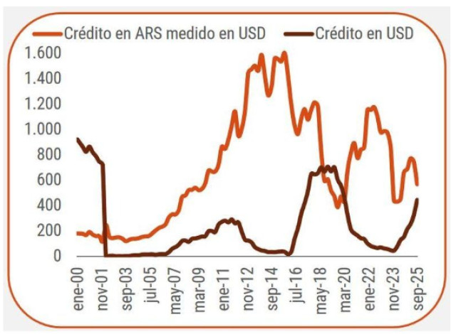 El crédito al sector ganadero, tanto en pesos argentinos como en dólares, se encuentra actualmente muy por debajo de los máximos alcanzados entre 2013 y 2017, cuando el financiamiento superaba una cifra equivalente a 1500 millones de dólares.