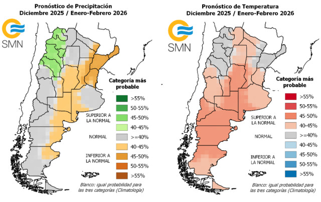 En el pronóstico trimestral del SMN, manteniendo la tendencia desde el mes de noviembre, se esperan precipitaciones inferiores a lo normal y temperaturas superiores a lo normal.