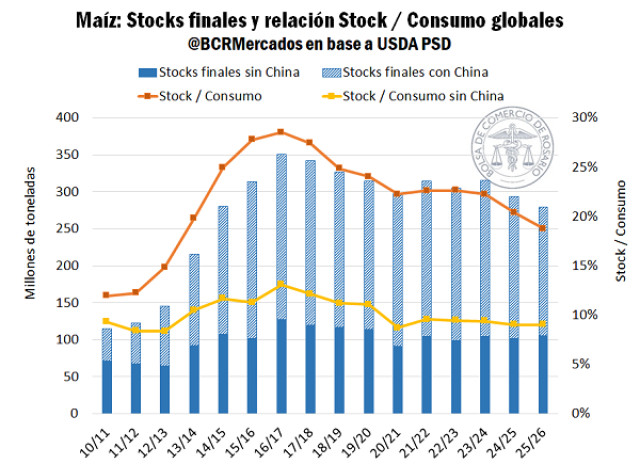 Los stocks finales esperados para la campaña son los más bajos en doce años y el ratio stock/consumo es el mínimo en trece.