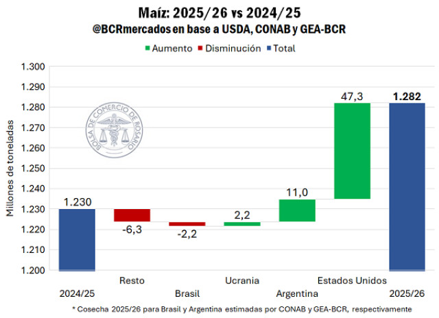 Sin embargo, a pesar de la ligera caída esperada en la producción, las expectativas iniciales de exportación son de 46,5 millones de toneladas en el ciclo 2025/26, un 16% más que la campaña anterior. En un contexto de paulatina recuperación de stocks en el país vecino, CONAB espera que las tensiones arancelarias entre Estados Unidos y sus compradores tradicionales podrían favorecer al maíz brasilero.