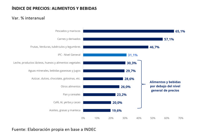 El análisis a nivel de productos dentro de los rubros refuerza esta lectura. En el caso de Alimentos y bebidas, la suba del índice estuvo concentrada en un número reducido de categorías, como carnes, pescados y frutas y verduras, mientras que una gran parte de los productos básicos mostró aumentos inferiores al nivel general. La menor inflación en bienes esenciales y de consumo masivo contribuyó a moderar el impacto del aumento de precios sobre el poder adquisitivo de los hogares.