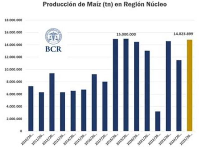 En el cálculo de esta primera estimación se incluye además un 10% de maíz tardío y de segunda, sembrado en tiempo y forma, que todavía tiene todo su potencial por delante. Así, la campaña 25/26 se perfila como la tercera mayor cosecha de la región en los últimos 15 años, aunque con un sabor agridulce; sin la interrupción de las lluvias en la ultima semana de diciembre y las primeras de enero, la posiblidad de rindes récords parecía estar al alcance de los productores.