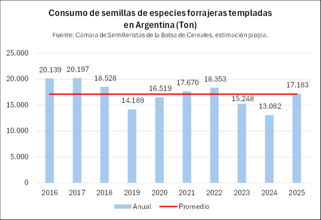 Si bien, de acuerdo con las estimaciones de la Cámara de Semilleristas de la Bolsa de Cereales, el consumo doméstico de semillas de pasturas y ryegrass anual creció un 31% en el último año, aún se encuentra por debajo de los niveles de la última década, lo que marca un amplio margen de recuperación productiva.