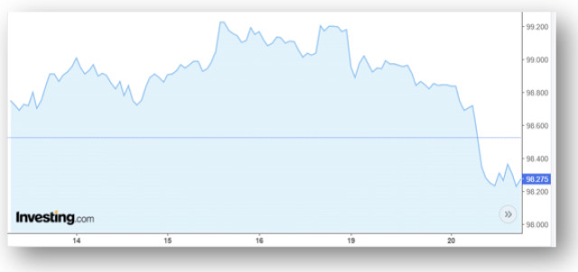 El Índice Dólar siguió golpeado por el contexto geopolítico. Bajó casi 1% otro 0,9% hasta 98,40.