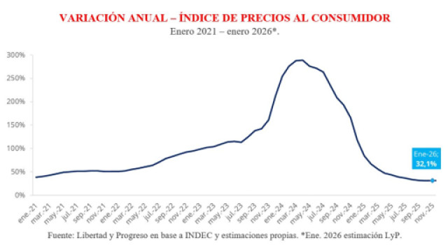 El IPC LyP registró en enero un aumento del 2,6% mensual, mostrando una desaceleración respecto de diciembre, cuando la inflación había sido del 2,8%, según el último dato oficial del INDEC. Con este resultado, la variación interanual se ubicó en 32,1%, convirtiéndose en el segundo registro más bajo de los últimos veintidós meses.