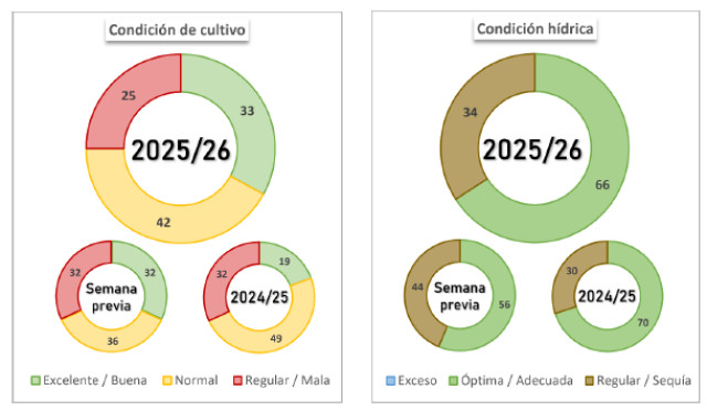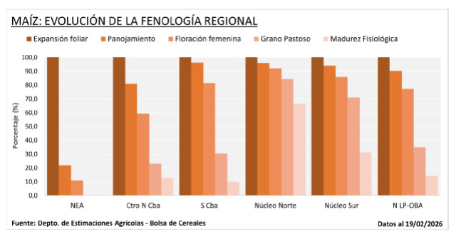 Continúa la recolección de maíz temprano, mientras mejora la oferta hídrica para los planteos tardíos tras las lluvias recientes. En el centro y sur de Buenos Aires, la evolución del cultivo aún depende de nuevas precipitaciones.