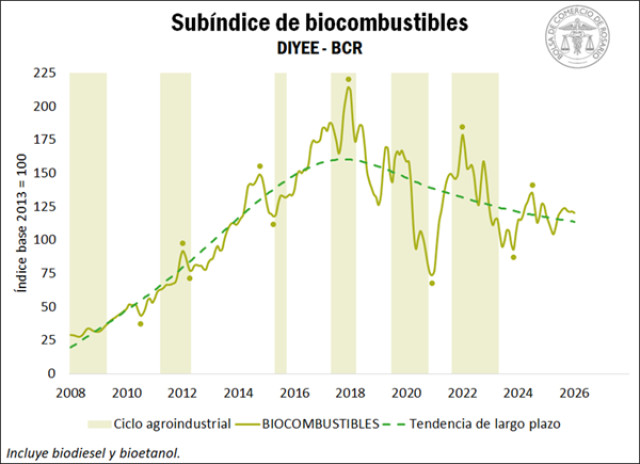 Finalmente, se estima que la producción conjunta de biocombustibles, medida a través de la elaboración de biodiesel y bioetanol, registró una caída mensual del 0,9% durante enero. Esta disminución responde a una merma estimada en la elaboración de bioetanol, que habría disminuido 2,7% respecto de diciembre, en tanto la producción de biodiesel, por el contrario, habría avanzado 0,9% mensual. Respecto a este sector, cabe mencionar que en el primer mes del año se restableció el corte obligatorio del 7,5% en gasoil con biodiesel, luego de la reducción transitoria aplicada en noviembre pasado, así como nuevos precios de adquisición para ambos biocombustibles.