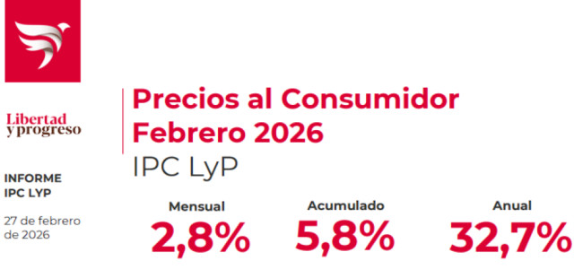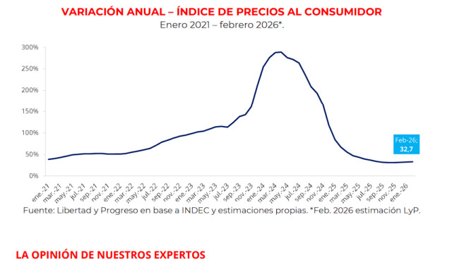 Iván Cachanosky, Economista Jefe de la Fundación Libertad y Progreso, dice que "febrero volvería a mostrar una desaceleración de la inflación luego de ocho meses de incrementos mensuales. No obstante, la inflación mensual continúa en niveles altos. Esperamos que a partir de ahora se retorne al sendero de la desinflación que había logrado encarar el gobierno en su primer año y medio de gestión. El tipo de cambio se mantiene estable, lo que juega a favor. Además, el BCRA continúa mostrando prudencia en su política monetaria. Con todo, el proceso de desinflación continuaría y el 2026 cerraría en torno al 20% anual".