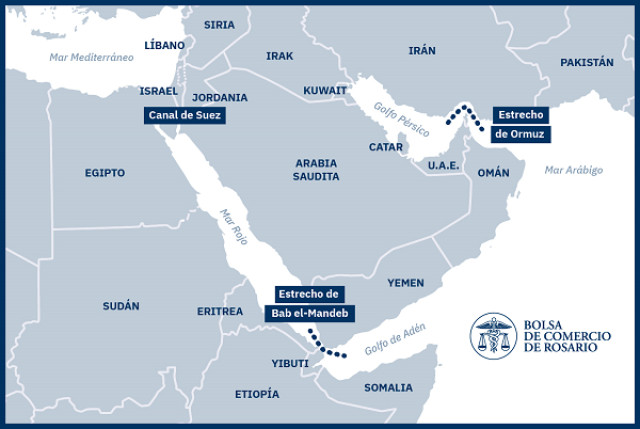 Sin lugar a duda, el inicio de las operaciones militares de combate de Estados Unidos en Irán fue el principal titular de las agencias de noticias alrededor de todo el globo. El foco de los análisis financieros y de mercado, más allá de las estrategias militares y eventual duración del conflicto, está puesto en el Estrecho de Ormuz. El Estrecho conecta el Golfo Pérsico con el Golfo de Omán y el Mar Arábigo/Océano Índico y es la principal salida para las exportaciones de Arabia Saudita, Emiratos Árabes Unidos, Kuwait, Irak y Qatar. Desde la región fluye aproximadamente el 25% del comercio marítimo de petróleo y el 20% de Gas Natural Licuado, que es un input fundamental para la producción de, por ejemplo, la urea. Además, el Estrecho es la llave de paso de un tercio del comercio internacional de fertilizantes.