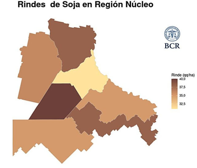 El escenario trazado al principio de campaña era el de un promedio de 40 quintales por hectárea en la región y, por lo tanto, cosechar 18 Mt. Lo que se estima en marzo es un rinde medio de 36,5 qq/ha, que, a partir de un área sembrada de 4,58 M ha y una superficie perdida cercana a 164.000 ha, arrojaría una producción de 16,1 Mt.