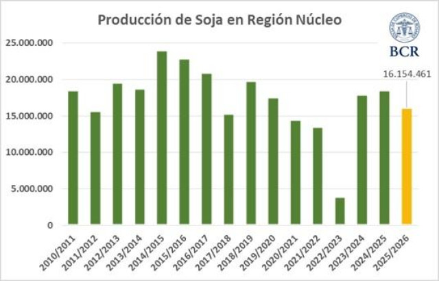 El resumen, el ciclo sojero 2025/26 quedaría 2,3 Mt por debajo del volumen obtenido el año pasado y también por debajo del promedio de los últimos 15 años (17,4 Mt).
