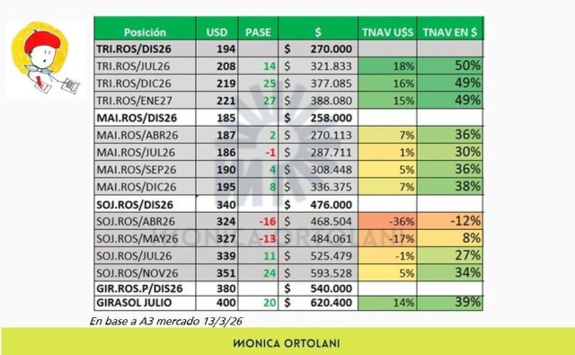 También tener en cuenta que hoy una soja noviembre/26 a U$s 351 respecto mayo en U$s 327 te rinde casi un 15% en dólares.