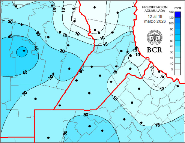 El registro máximo medido en los últimos 7 días en la región núcleo fue los 66 mm de Bengolea. El oeste sigue acaparando los mayores acumulados con lluvias por encima de los 20 mm.