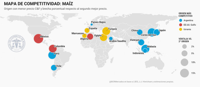 Teniendo en cuenta las toneladas embarcadas y las que restan por hacerlo durante el mes de marzo, el programa exportador para el primer mes de la campaña de maíz indica que será récord, superando las 4 Mt exportadas del cereal. A pesar de las subas de los costos globales de fletes marítimos, el maíz argentino sigue siendo el más competitivo del mundo, aprovechando la ventana típica de competitividad global hasta que ingresen al mercado las toneladas brasileras a partir de junio/julio.