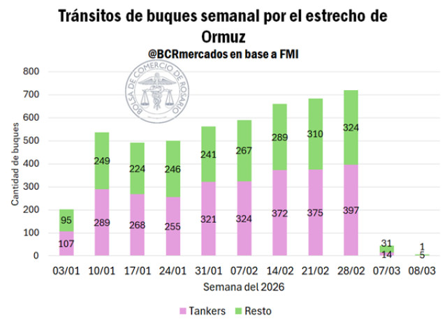 El Estrecho de Ormuz sigue virtualmente cerrado, con una caída del 94% en el tráfico de buques. Las hostilidades continúan en Medio Oriente y, lejos de apaciguarse, se profundiza la destrucción de infraestructura y el bloqueo al comercio internacional. En un escenario global complejo, con noticias en constante desarrollo y un desenlace que no cuenta con un consenso común, la volatilidad y el juego de los fondos especulativos está teniendo un rol clave en la dinámica de los precios del agro.