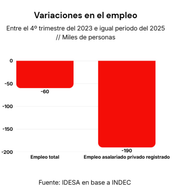 El empleo urbano total cayó en esos dos años en unos 60 mil trabajadores.